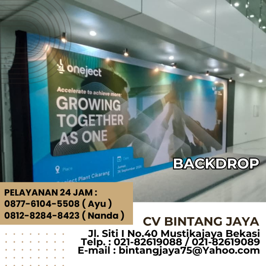 Backdrop dengan ukuran 2x1 bisa anda dapatkan di tempat kami CV BINTANG JAYA GROUP, dengan kualitas gambar yang jelas dan penuh dengan warna. Soal harga tak perlu dirisaukan, kami sediakan dengan berbagai harga sewa tergantung dari kualitas bahan materialnya atau tergantung dari keinginan konsumen itu sendiri.