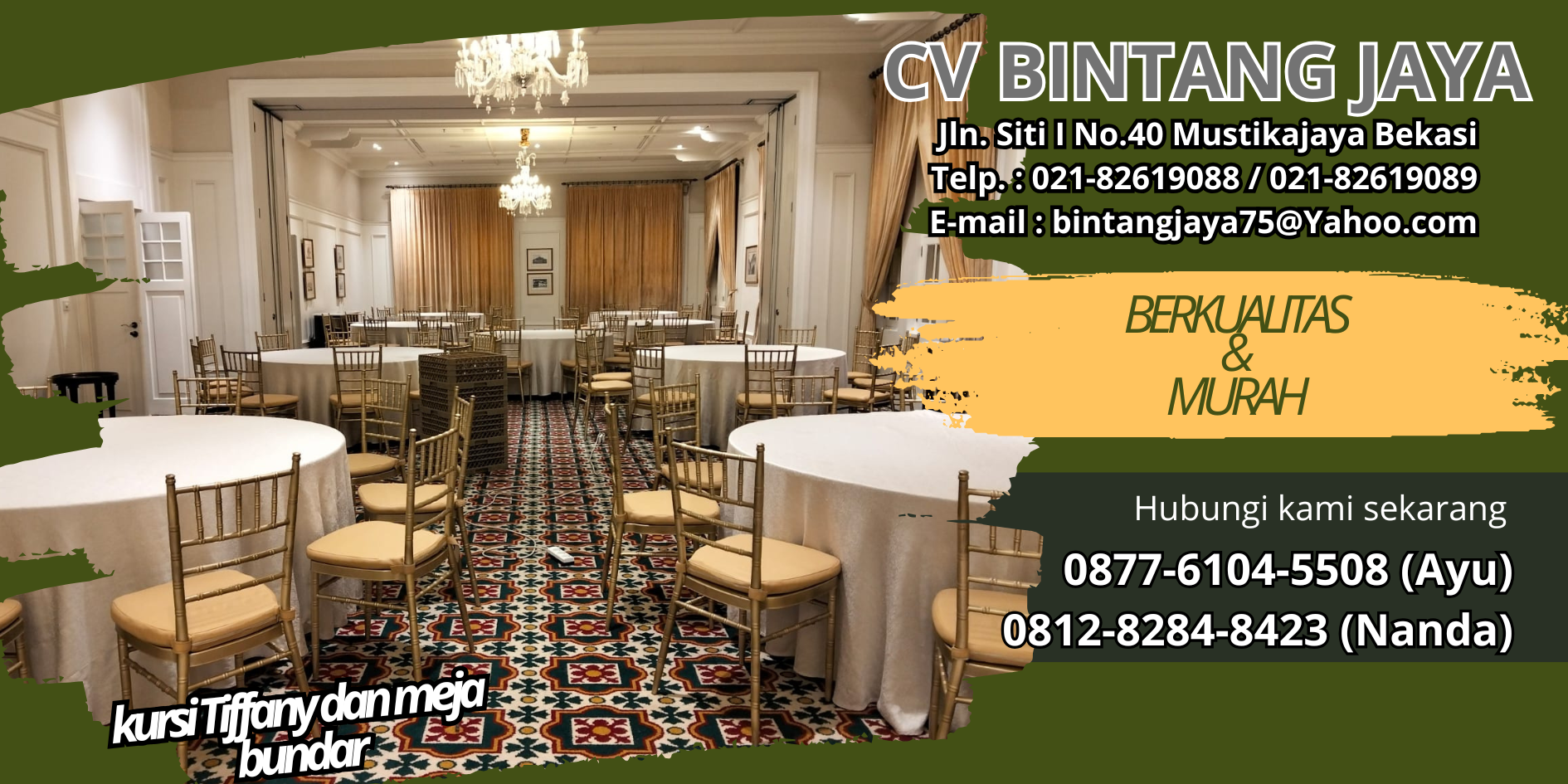 Sebagai vendor jasa sewa alat alat pesta yang terpercaya, CV BINTANG JAYA GROUP memiliki beberapa keunggulan yang beda dari yang lain, dengan keunggulan ini kami menjadi salah satu vendor jasa sewa alat pesta yang sudah terbukti diberbagai tempat se jabodetabek dan sekitarnya.